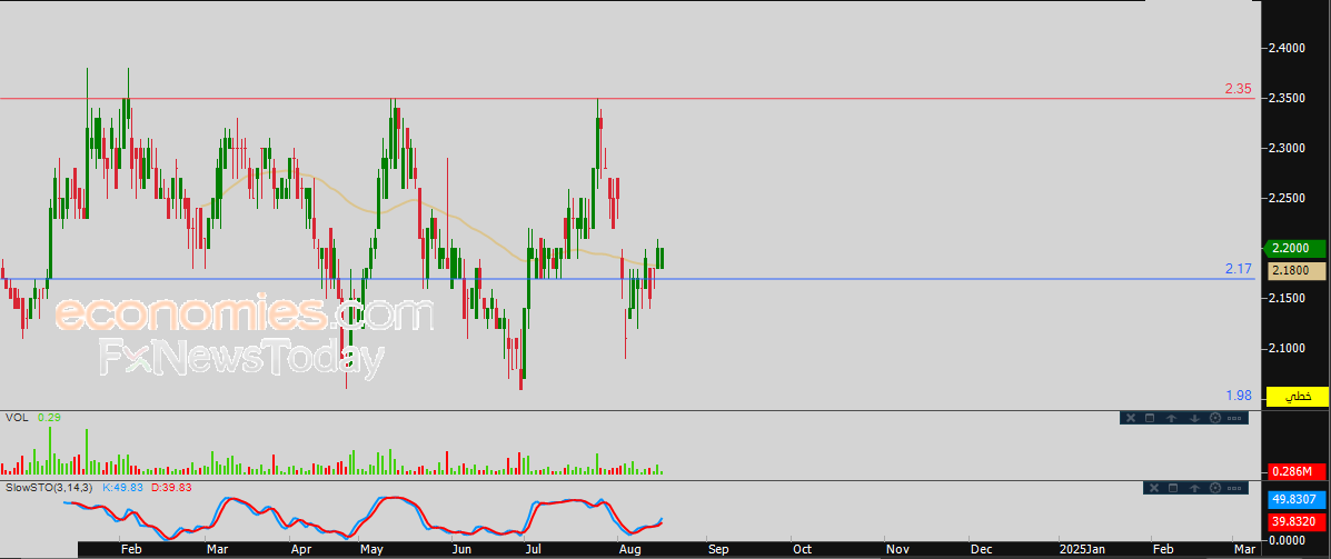 لهذا فتوقعاتنا تشير إلى ارتفاع سعر السهم خلال تداولاته القادمة، خاصة طيلة استقراره فوق مستوى 2.17، ليستهدف مستوى المقاومة المحوري 2.35.