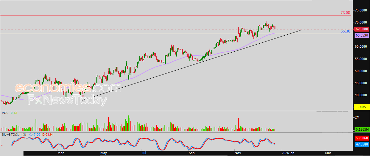 لذلك فتوقعاتنا تميل نحو صعود سعر السهم خلال تداولاته القادمة، طيلة ثبات مستوى الدعم 65.30 ريال، ليستهدف مستوى المقاومة 73.00 ريال.