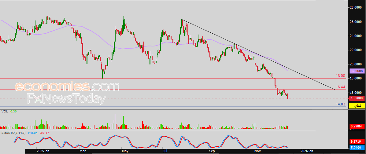 لذلك فتوقعاتنا تشير إلى هبوط سعر السهم خلال تداولاته القادمة، خاصة طيلة استقراره دون المقاومة 16.45 ريال، ليستهدف مستوى الدعم 14.00 ريال.