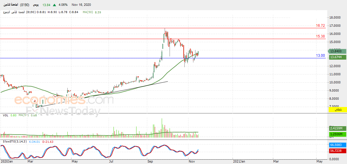 لهذا نحن نتوقع المزيد من الارتفاع للسهم خلال تداولاته القادمة، طيلة ثبات الدعم 13.00، ليستهدف أولى مستويات المقاومة 15.38.