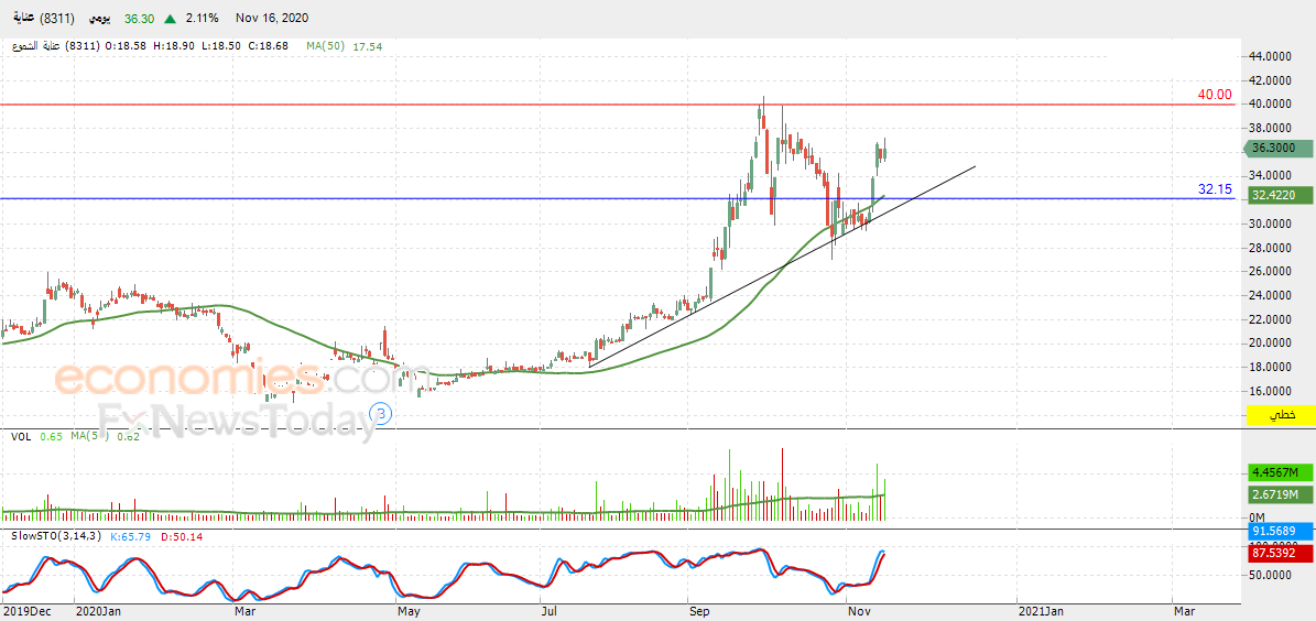 لهذا نحن نتوقع المزيد من الارتفاع للسهم خلال تداولاته القادمة، طيلة ثبات الدعم 32.15، ليستهدف مستوى المقاومة المحوري 40.00.