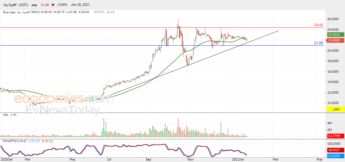 نطاق التداول المتوقع لهذا اليوم ما بين مستوى الدعم 21.00 ومستوى المقاومة 22.96.