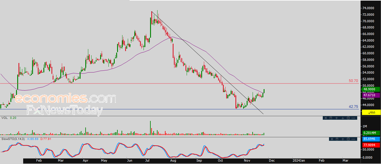 لهذا فتوقعاتنا تشير إلى المزيد من الصعود للسهم خلال تداولاته القادمة، ليستهدف مستوى المقاومة المهم والقريب 50.70 استعداداً لمهاجمته.