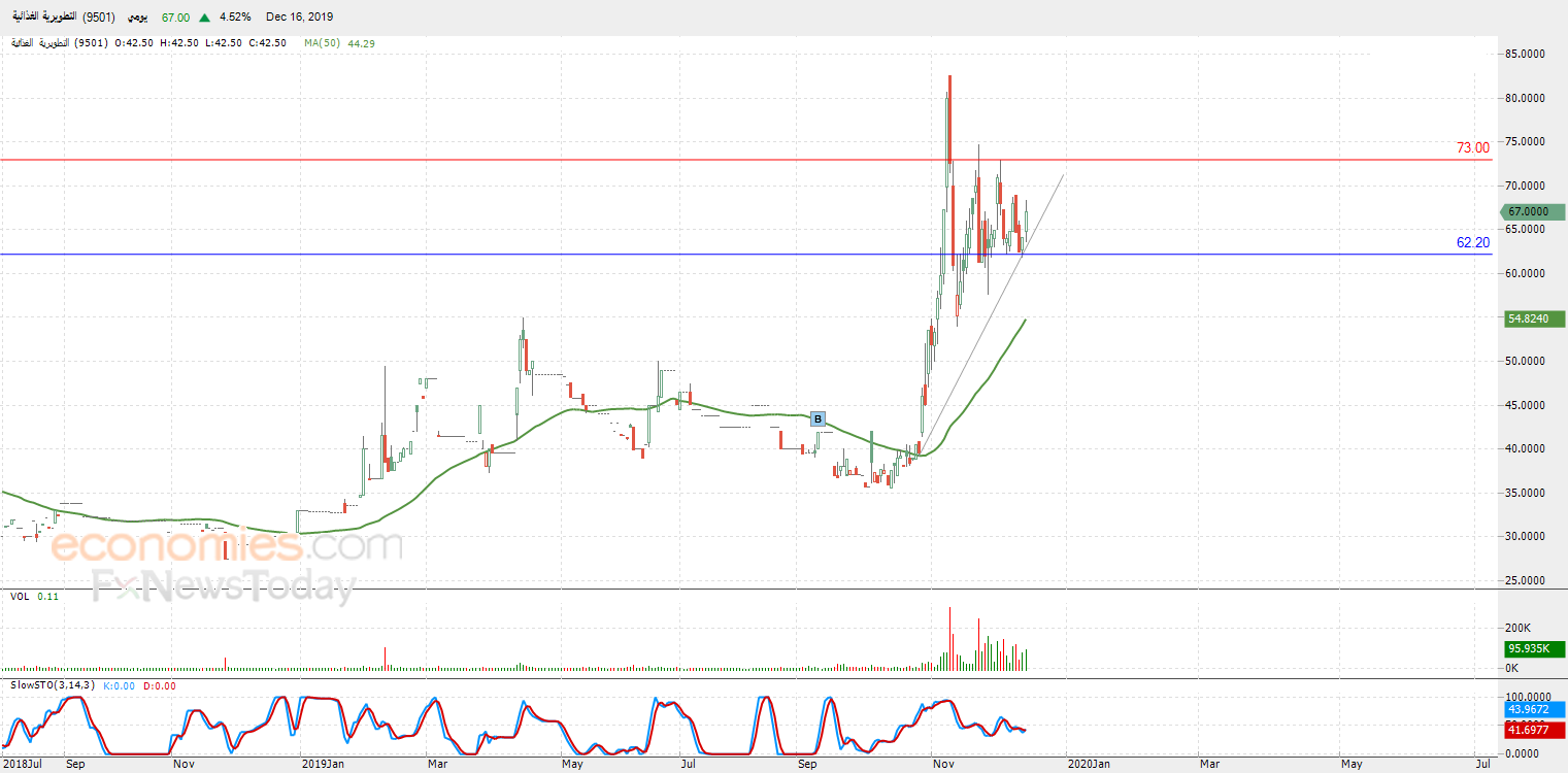 نطاق التداول المتوقع لهذا اليوم ما بين مستوى الدعم 62.20 ومستوى المقاومة 73.00.