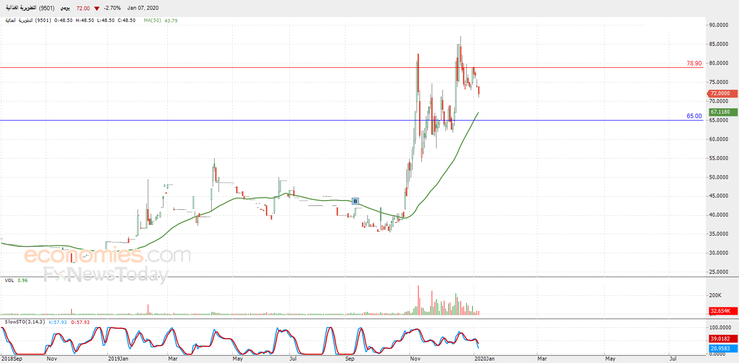 لهذا نحن نرجح عودة ارتفاع السهم خلال تداولاته القادمة، طيلة ثبات الدعم 65.00، ليستهدف مستوى المقاومة 78.90.