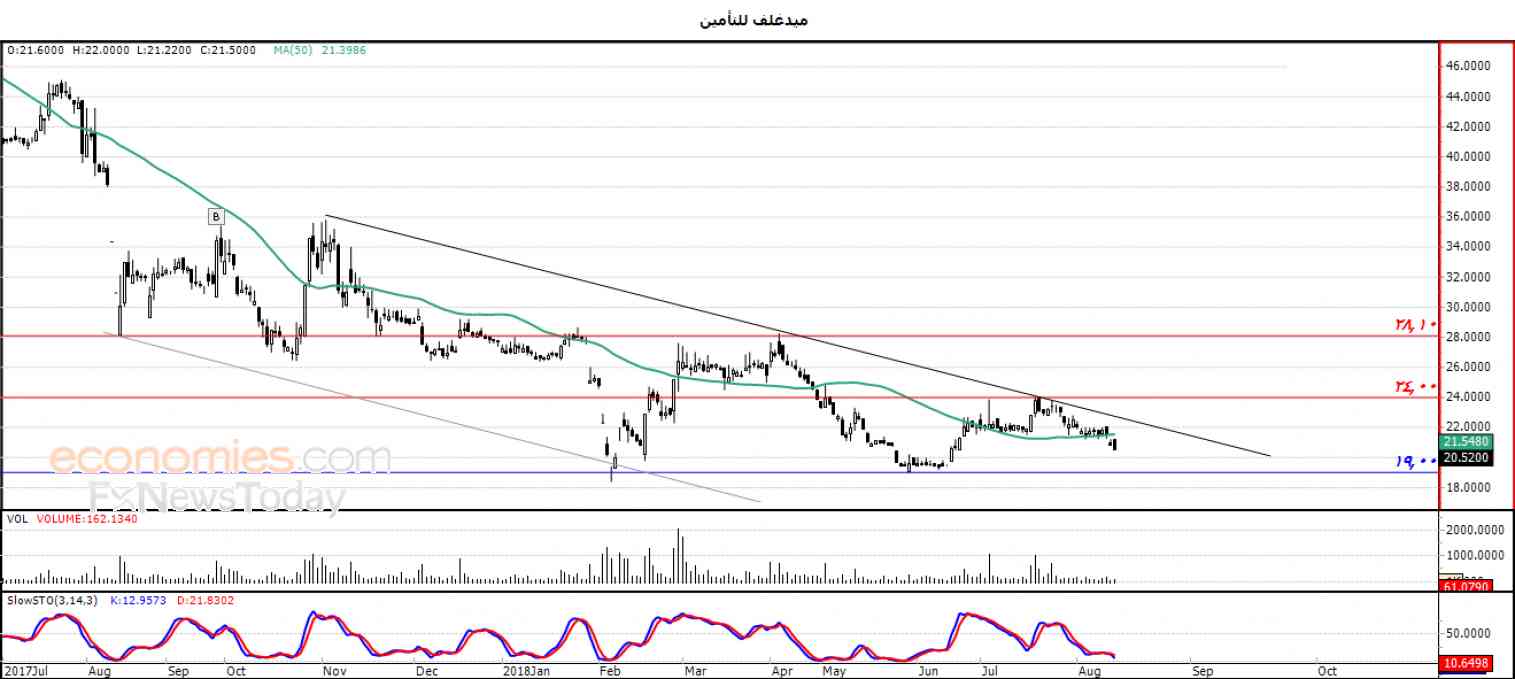 ولذلك نحن نتوقع المزيد من الانخفاض للسهم خلال تداولاته القادمة ، طيلة ثبات المقاومة 24.00 ، ليستهدف مستوى الدعم المحوري 19.00 .