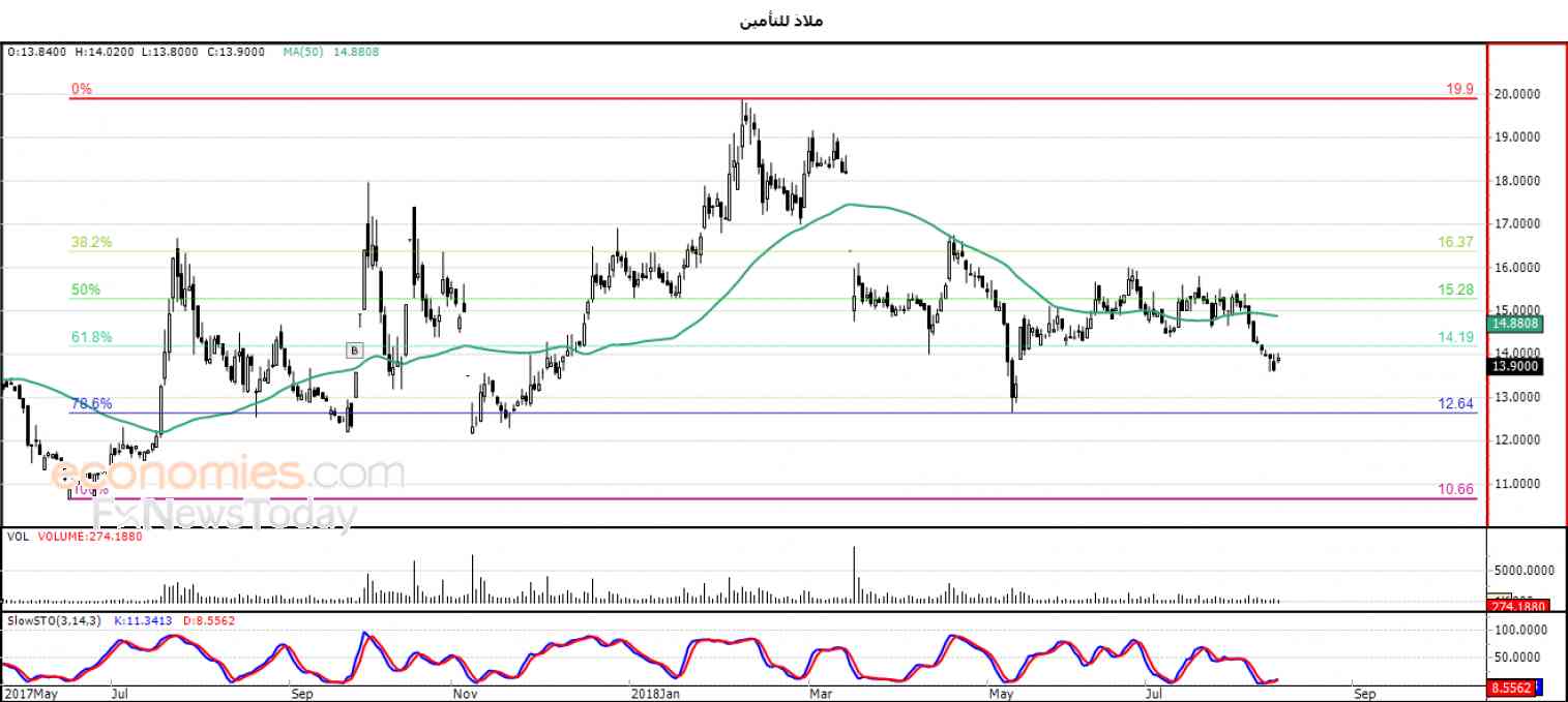 نطاق التداول المتوقع لهذا اليوم ما بين مستوى الدعم 13.00 ومستوى المقاومة 14.62 .