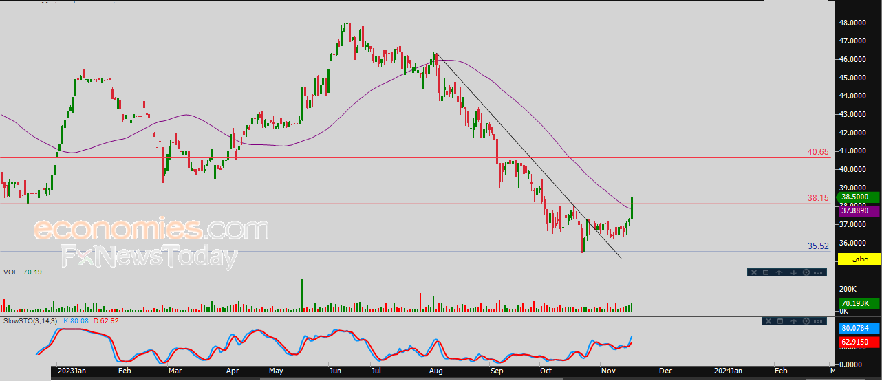 لذلك فتوقعاتنا تشير إلى المزيد من الصعود للسهم خلال تداولاته القادمة، خاصة في حالة استقراره فوق مستوى 38.15، ليستهدف مستوى المقاومة 40.65.