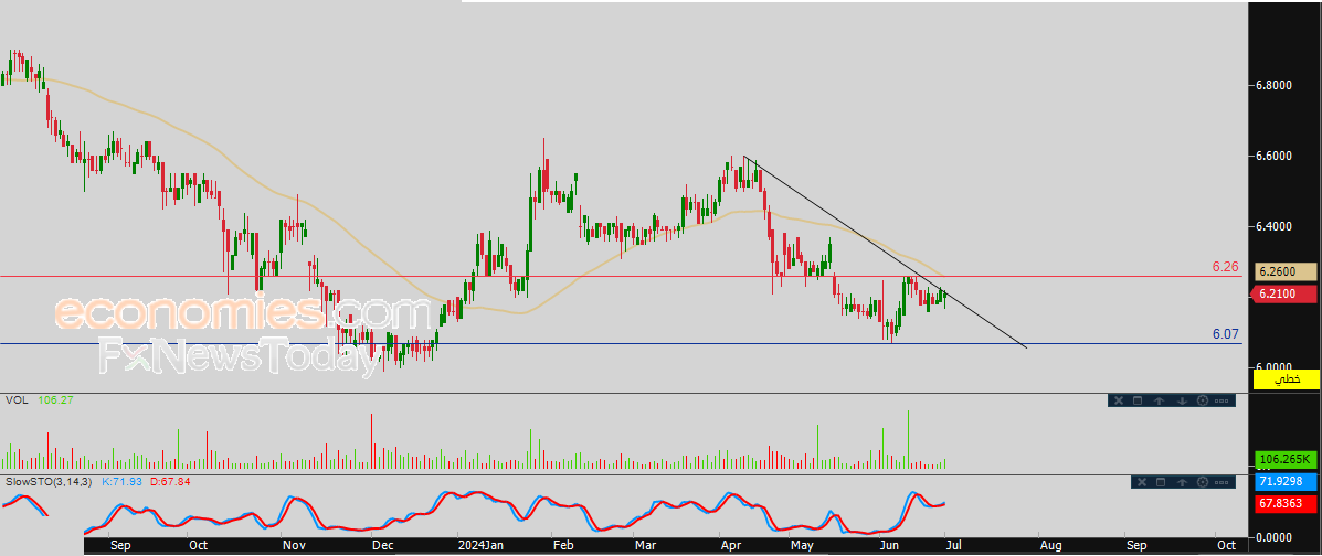 لهذا نحن نرجح عودة هبوط سعر السهم خلال تداولاته القادمة، طيلة ثبات مستوى المقاومة 6.26، ليستهدف مستوى الدعم 6.00.