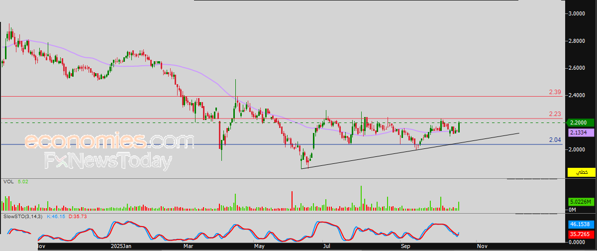 لذلك فتوقعاتنا تشير إلى صعود سعر السهم خلال تداولاته القادمة، بشرط اختراقه أولاً للمقاومة المذكورة 2.23 ريال، ليستهدف بعدها مقاومته التالية عند سعر 2.39 ريال.