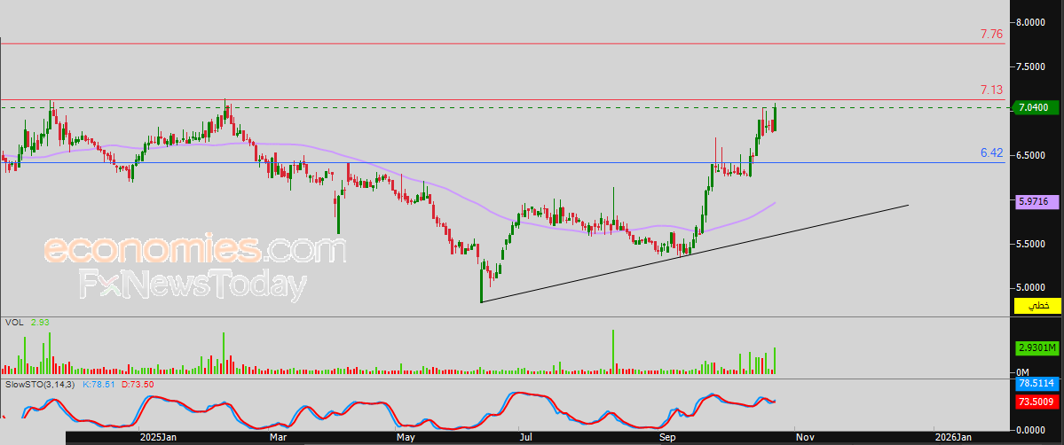 لذلك فتوقعاتنا تشير إلى صعود سعر السهم خلال تداولاته القادمة، بشرط اختراقه أولاً للمقاومة المذكورة 7.13 ريال، ليستهدف بعدها مقاومته التالية عند سعر 7.75 ريال.