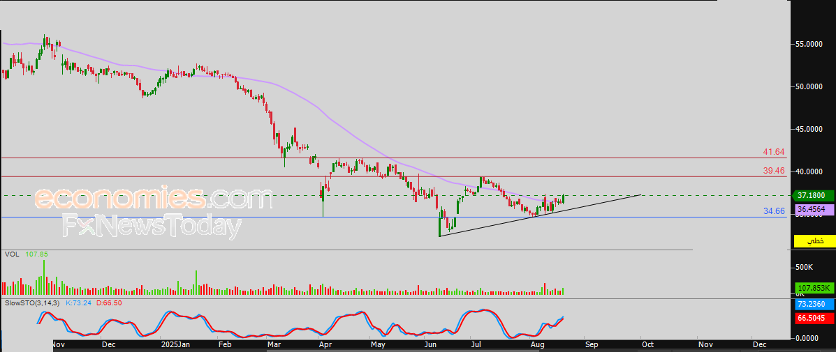 لهذا فتوقعاتنا تشير إلى صعود سعر السهم خلال تداولاته القادمة، طيلة ثبات مستوى الدعم 34.65 ريال، ليستهدف أولى مستويات المقاومة عند سعر 39.45 ريال.
