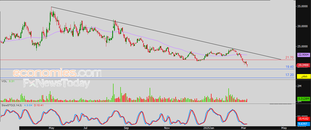 واصل سعر سهم شركة سال السعودية للخدمات اللوجستية (4263) الهبوط خلال تداولاته الأخيرة على المستويات اللحظية، ليستند السهم بانخفاضه الاخير إلى مستوى الدعم الحالي 185.40 ريال، ما أكسبه القليل من الزخم الإيجابي والذي ساعده على تقليص البعض من خسائره خلال الجلسة، السهم الآن بحاجة لتعويض جزء من خسائره وتصريف البعض من تشبعه البيعي بمؤشرات القوة النسبية، ولكن مع سيطرة الاتجاه التصحيحي الهابط وشدة هبوطه السابق يجعلنا نتشكك في هذا السيناريو، وسط استمرار الضغط السلبي بسبب تداولاته دون متوسطه المتحرك البسيط لفترة 50 يوماً السابقة.