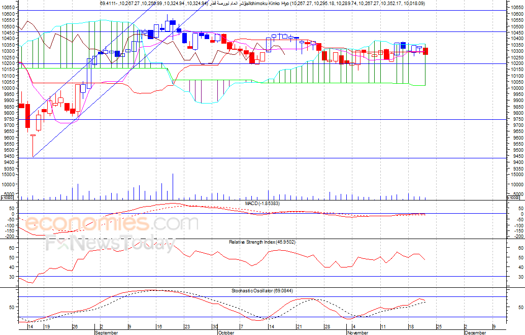 شهد المؤشر تذبذب في الاداء صعودا وهبوطا منذ شهر اكتوبر الماضي، حيث انهى جلسة الخميس الماضي منخفضا عند مستوى 10267 نقطة، وذلك بعدما تلقى مقاومة بسبب ملامسته للحد العلوي للسحابة الخاصة بمؤشر "Ichimoku Cloud” لذلك مازالت رؤيتنا الفنية كما هي، حيث نتوقع مزيدا من التذبذب بين مستوى 10200 ومستوى 10450 نقطة حتى اختراق احدهم.