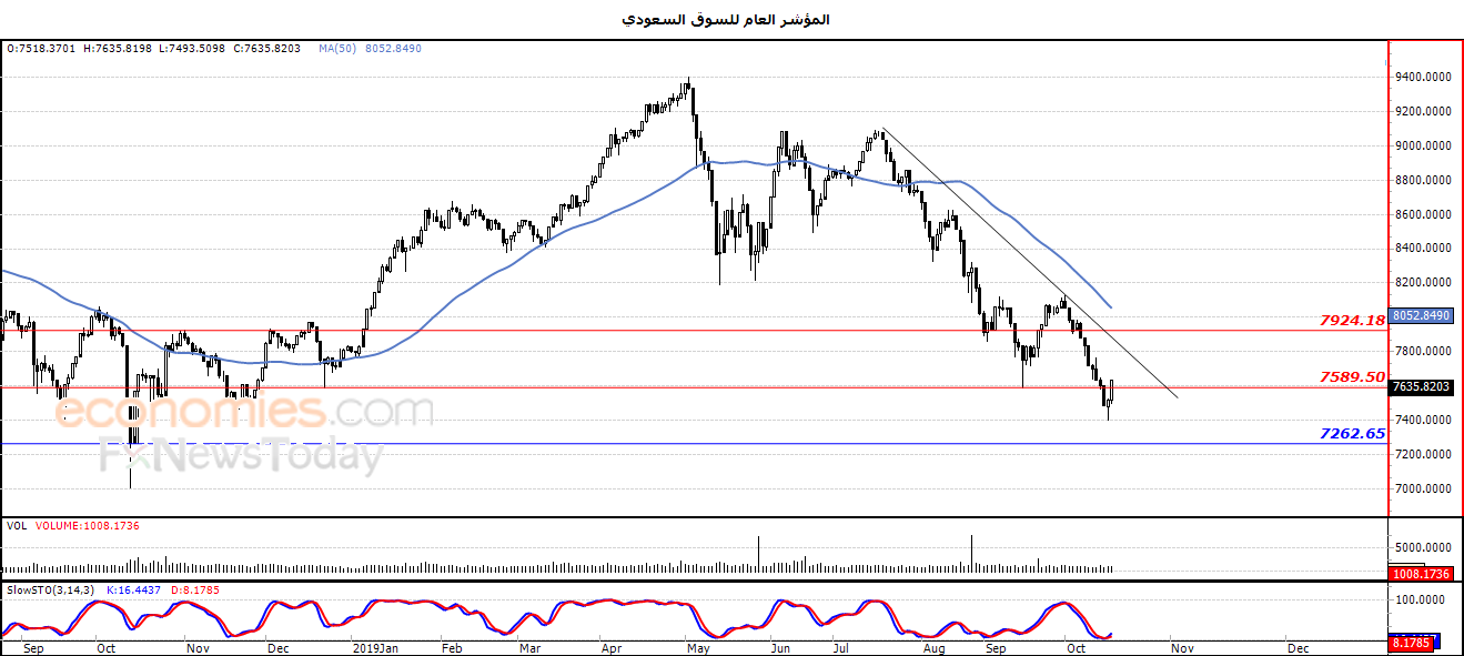 لهذا مازالت توقعاتنا السلبية المحيطة بالمؤشر خلال تداولاته القادمة ، خاصة في حالة عودة استقراره أدنى مستوى 7589.50 ، ليستهدف بعدها مستوى الدعم 7262.65 .