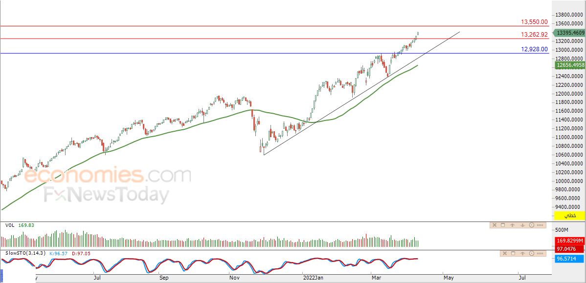 نطاق التداول المتوقع لهذا اليوم ما بين مستوى الدعم 13,200 ومستوى المقاومة 13,550.