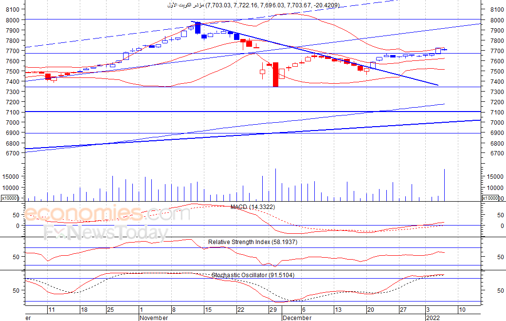 ومتوقع ان يكون النطاق السعري خلال اليوم الحالي بين مستوى الدعم هو 7,692 بينما مستوى المقاومة هو 7,719 نقطة