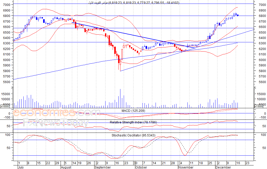من المتوقع ان يكون النطاق السعري خلال جلسة اليوم بين مستوى الدعم هو 6,758 نقطة وبين مستوى المقاومة هو 6,817 نقطة