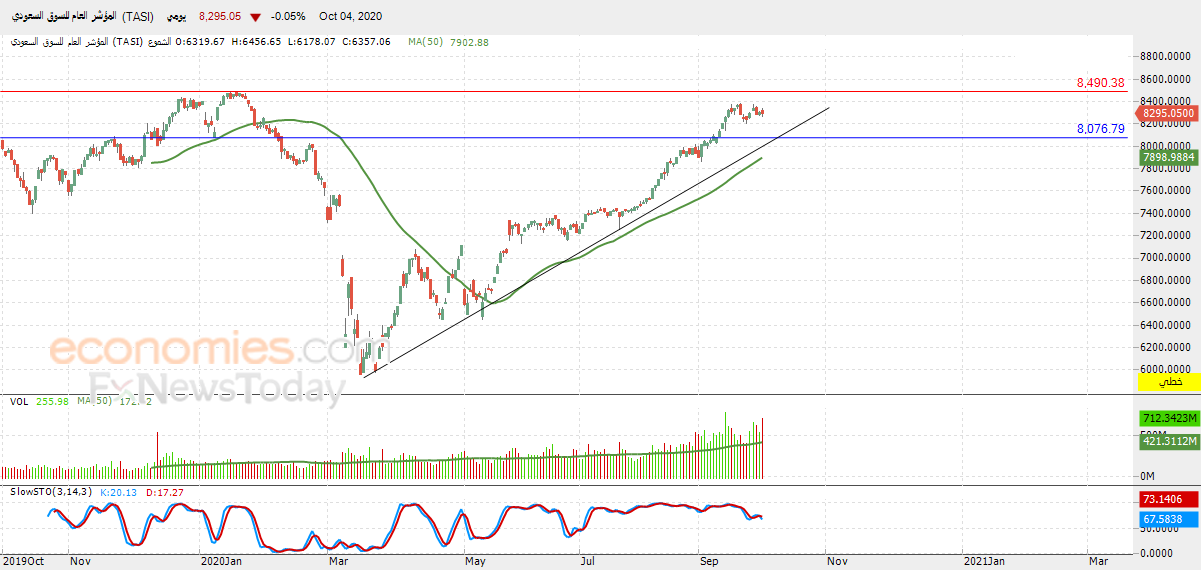نطاق التداول المتوقع لهذا اليوم ما بين مستوى الدعم 8,200.00 ومستوى المقاومة 8,490.38.