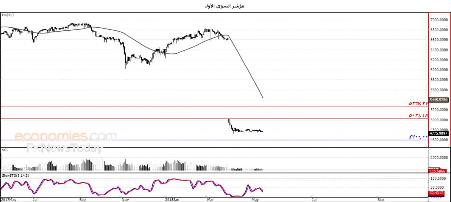 ولذلك تشير توقعاتنا إلى المزيد من الانخفاض للمؤشر خلال تداولاته القادمة ، طيلة ثبات المقاومة 5031.18 ، ليستهدف مستوى الدعم 4600.00 .