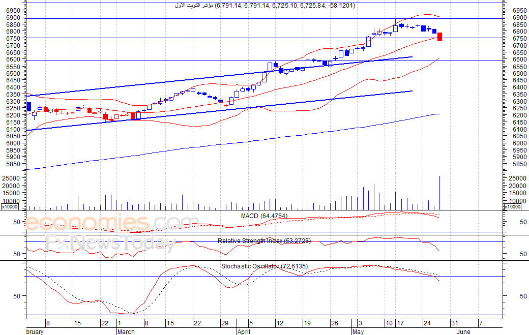 ومتوقع ان يكون النطاق السعري خلال اليوم الحالي بين مستوى الدعم هو 6,704 بينما مستوى المقاومة هو 6,770 نقطة