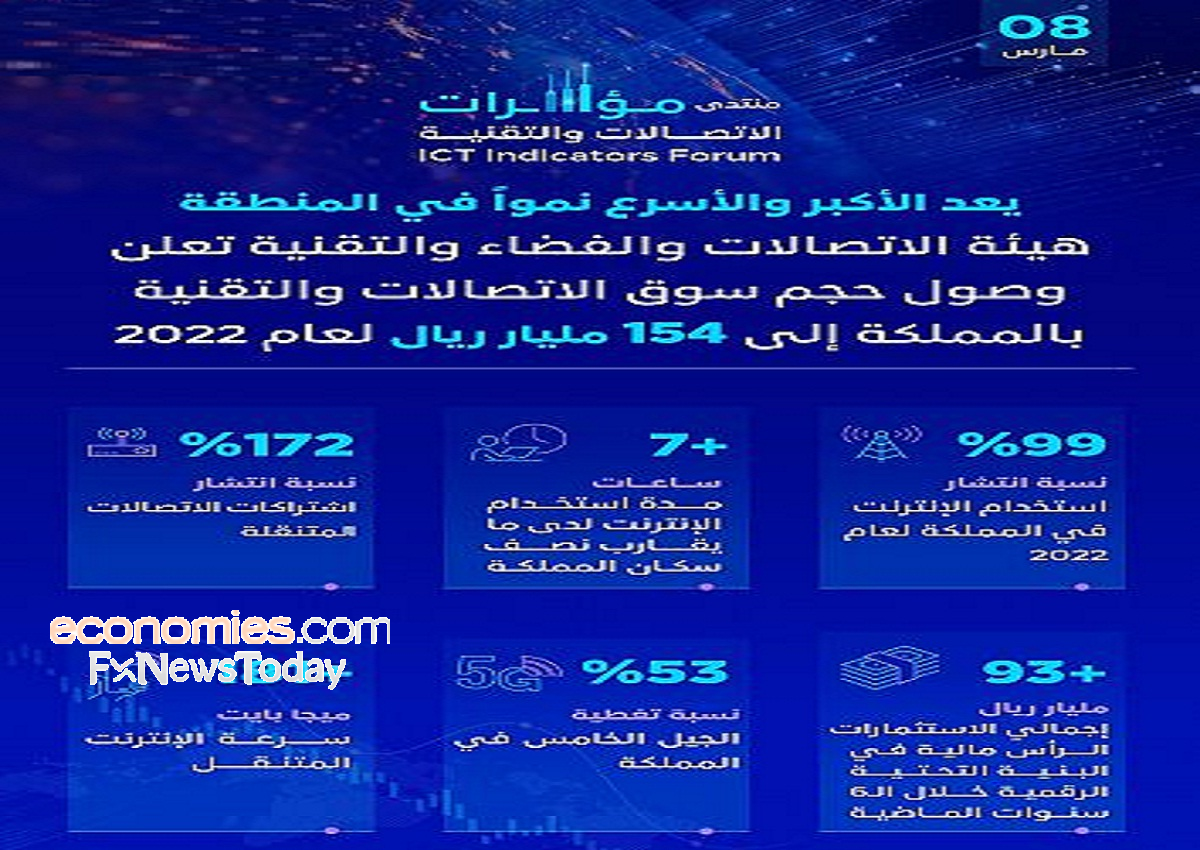 كشف وزير الاتصالات وتقنية المعلومات رئيس مجلس إدارة هيئة الاتصالات والفضاء والتقنية المهندس عبدالله بن عامر السواحه، أن حجم سوق الاتصالات والتقنية في المملكة وصل إلى 154 مليار ريال خلال عام 2022، مما جعله الأكبر والأسرع نمواً في منطقة الشرق الأوسط وشمال أفريقيا.