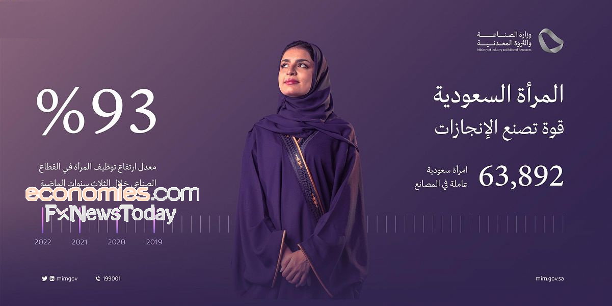 كشفت وزارة الصناعة والثروة المعدنية أن أعداد النساء العاملات في القطاع الصناعي ارتفع إلى 63,892 امرأة سعودية حتى نهاية عام 2022، مقارنة بـ 33 ألف في نهاية عام 2019، مسجلاً ارتفاعاً يتجاوز 93%.