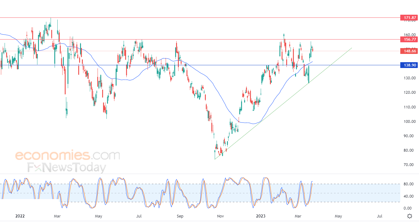 لهذا نحن نرجح عودة ارتفاع السهم خلال تداولاته القادمة، خاصة في حالة اختراقه للمقاومة المهمة 156.77، ليستهدف بعدها مستوى المقاومة المحوري 171.87.