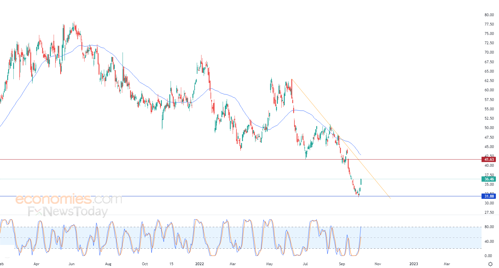 لذلك تشير توقعاتنا إلى ترجيح عودة انخفاض السهم خلال تداولاته القادمة، طيلة ثبات المقاومة 41.63، ليستهدف من جديد مستوى الدعم 31.90.