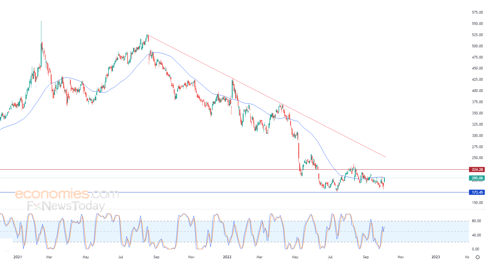 لهذا نحن نرجح عودة انخفاض السهم خلال تداولاته القادمة، طيلة ثبات المقاومة 224.30، ليستهدف مستوى الدعم المحوري 173.50.