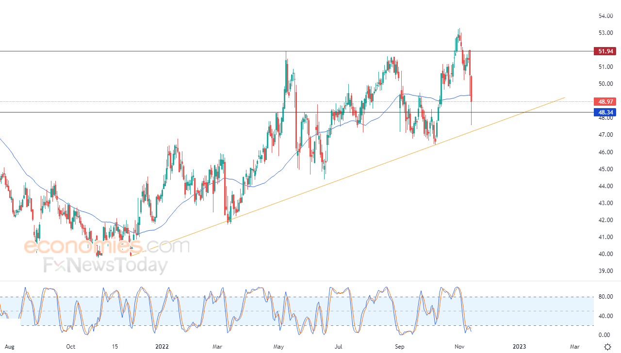 لهذا نحن نرجح عودة ارتفاع السهم خلال تداولاته القادمة، طيلة ثبات الدعم 48.35، ليستهدف مستوى المقاومة المحوري 52.00.