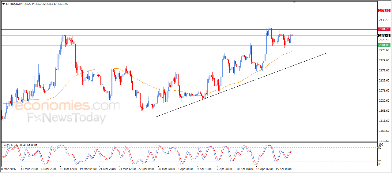 يستقر سعر الإيثيريوم (ETHUSD) على ارتفاع خلال تداولاته اللحظية الأخيرة، ليستعد السعر حالياً بمهاجمة مستوى المقاومة المحوري 2,380$، تلك المقاومة التي كانت هدفاً سعرياً لنا بتحليلاتنا السابقة، وسط استمرار الدعم الديناميكي المتمثل في تداولاته اعلى متوسطه المتحرك البسيط لفترة 50، مع سيطرة الاتجاه الرئيسي الصاعد على المدى القصير، مع تحركاته بمحاذاة خط ميل داعم لهذا المسار، بالإضافة لتوارد الإشارات الإيجابية من مؤشرات القوة النسبية.