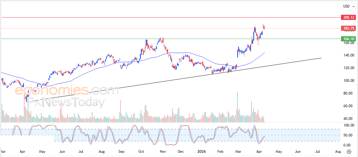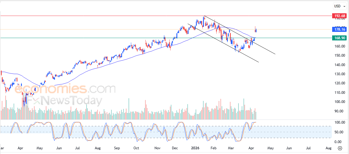 لذلك تشير توقعاتنا إلى صعود سعر السهم خلال تداولاته القادمة، طيلة استقراره أعلى الدعم 168.90$، ليستهدف مستوى المقاومة المحوري 192.65$.