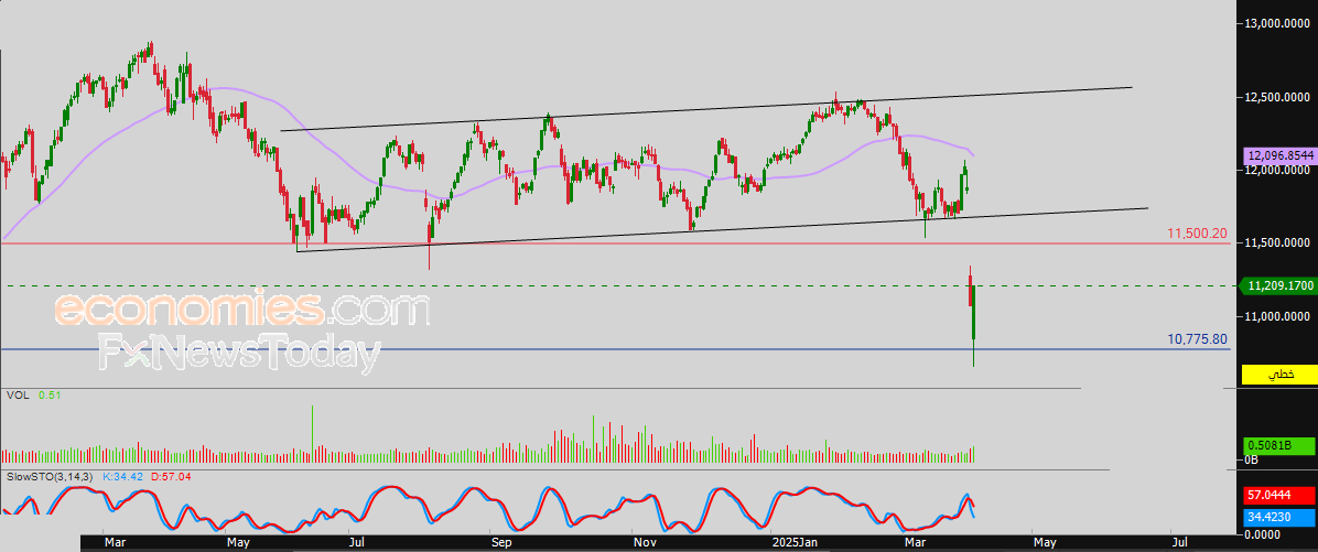 استطاع المؤشر العام للسوق السعودي تاسي (TASI) الارتداد صعوداً بتداولاته اللحظية الأخيرة، وذلك على اثر ثبات مستوى الدعم 10,775 نقطة حيث يمثل هذا المستوى نسبة 1.61% من امتداد مستويات فيبوناتشي للموجة التصحيحية الصاعدة على المدى القصير، والتي اتسمت بالتحركات ضمن نطاق قناة سعريه، ما أكسب المؤشر بعضاً من الزخم الإيجابي لينجح في تحويل خسائره المبكرة إلى مكاسب لحظية، محاولاً تعويض بعضاً من خسائره السابقة.