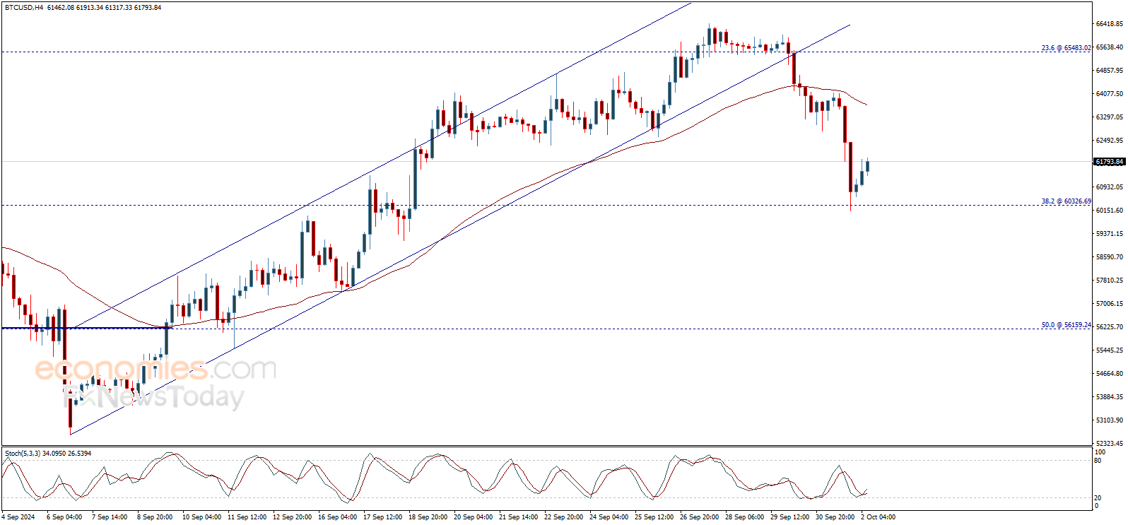 وبشكل عام، سيبقى الاتجاه الصاعد قائماً وفعالاً لهذا اليوم ما لم يتم كسر مستوى 60326.70$ والثبات دونه.