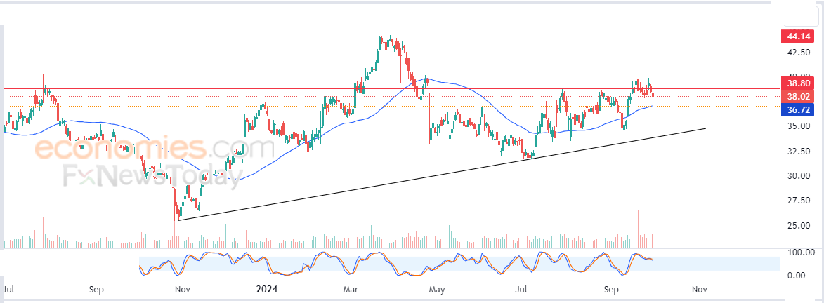 لذلك نحن نرجح عودة صعود سعر السهم خلال تداولاته القادمة، خاصة في حالة اختراقه للمقاومة سابقة الذكر 38.80$، ليستهدف بعدها مستوى المقاومة المحوري 44.00$.
