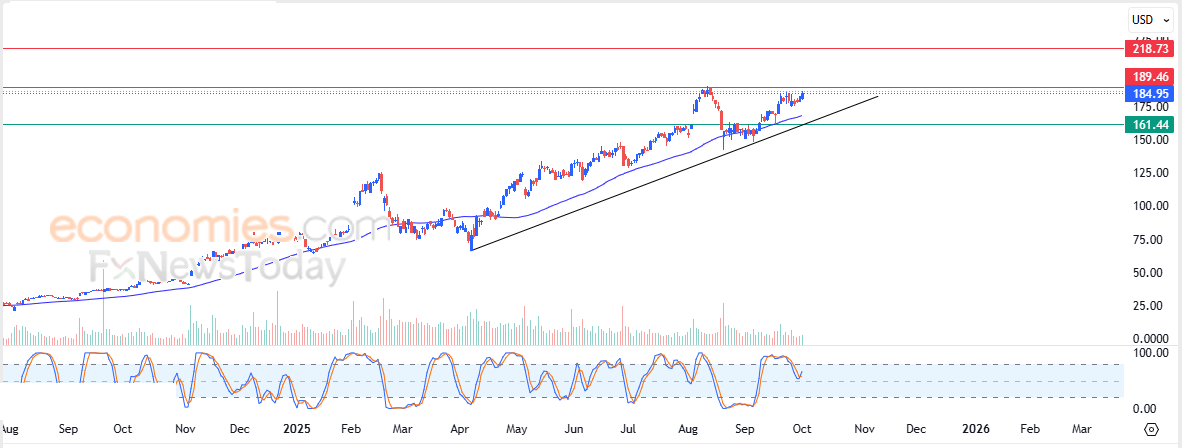 لذلك فتوقعاتنا تشير إلى صعود سعر السهم خلال تداولاته القادمة، خاصة في حالة اختراقه للمقاومة المذكورة 189.45$، ليستهدف بعدها مقاومته التالية عند سعر 218.70$.