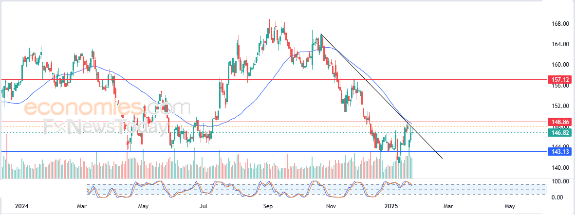 لهذا فتوقعاتنا ترجح عودة هبوط سعر السهم خلال تداولاته القادمة، طيلة ثبات مستوى المقاومة 148.86$، ليستهدف مستوى الدعم المحوري 143.13$.
