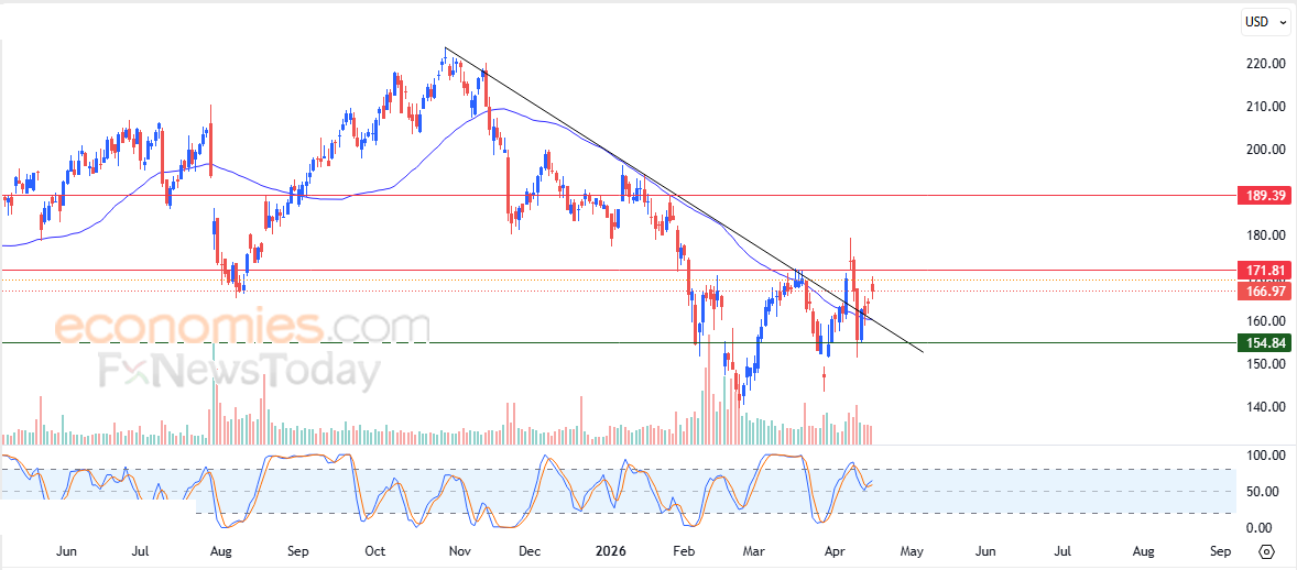 لذلك فتوقعاتنا تشير إلى صعود سعر السهم خلال تداولاته القادمة، خاصة في حالة اختراقه للمقاومة 171.80$، ليستهدف بعدها مقاومته التالية عند سعر 189.40$.