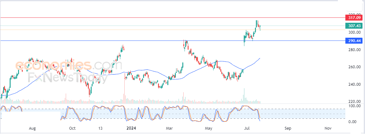لهذا فتوقعاتنا تشير إلى المزيد من الصعود لسعر السهم خلال تداولاته القادمة، طيلة ثبات مستوى الدعم 290.44$، ليستهدف مستوى المقاومة 317.00$.