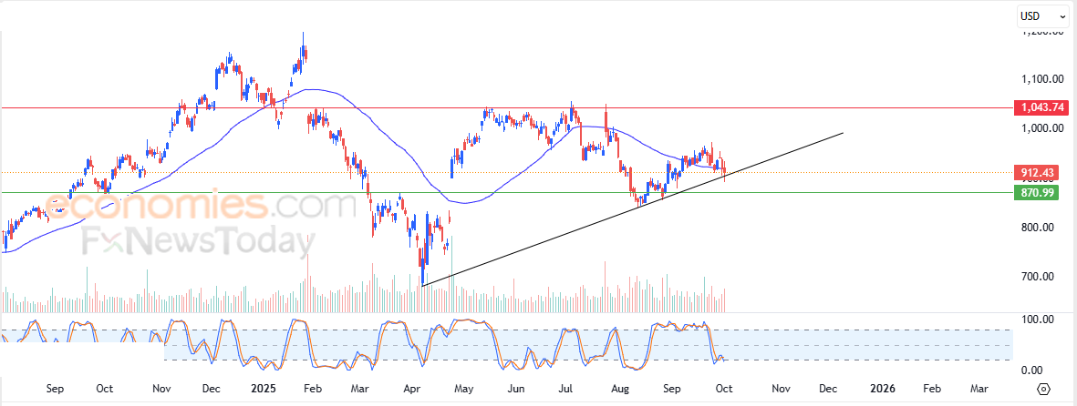 لهذا فتوقعاتنا تميل نحو صعود سعر السهم خلال تداولاته القادمة، بشرط ثبات مستوى الدعم 871.00$، ليستهدف مستوى المقاومة المحوري والنفسي 1,000$.