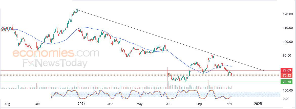 | النطاق المتوقع للتداول | 70.75$ (دعم) - 79.00$ (مقاومة) |