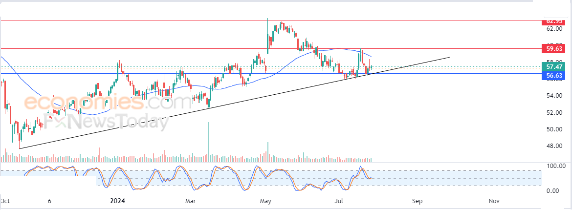 لهذا نحن نرجح ارتفاع سعر السهم خلال تداولاته القادمة، بشرط ثبات مستوى الدعم 56.63$، ليستهدف أولى مستويات المقاومة عند سعر 59.63$.