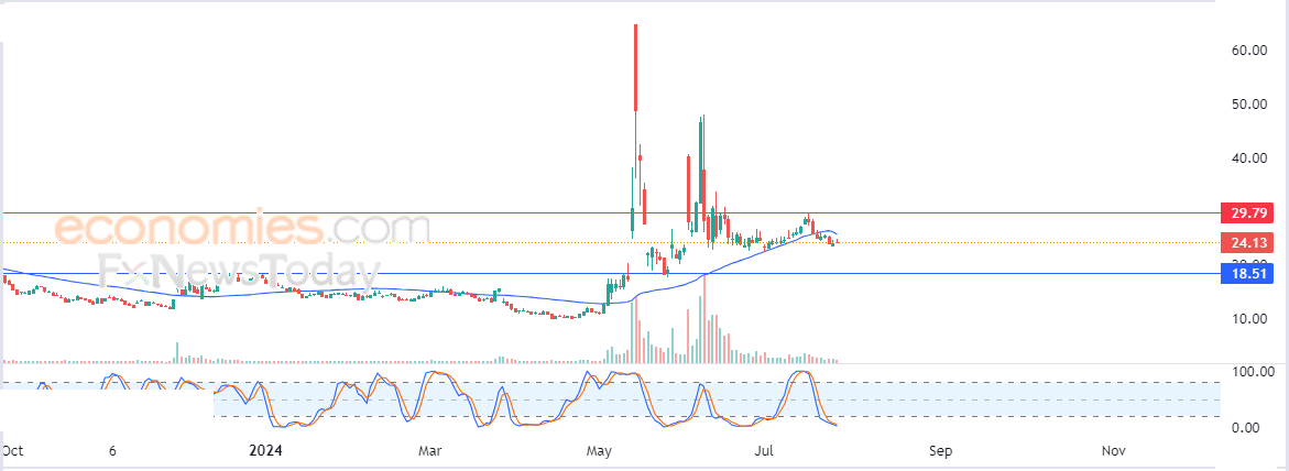 لهذا تشير توقعاتنا إلى ترجيح سيناريو عودة هبوط سعر السهم خلال تداولاته القادمة، طيلة ثبات مستوى المقاومة 29.80$، ليستهدف مستوى الدعم 18.50$.