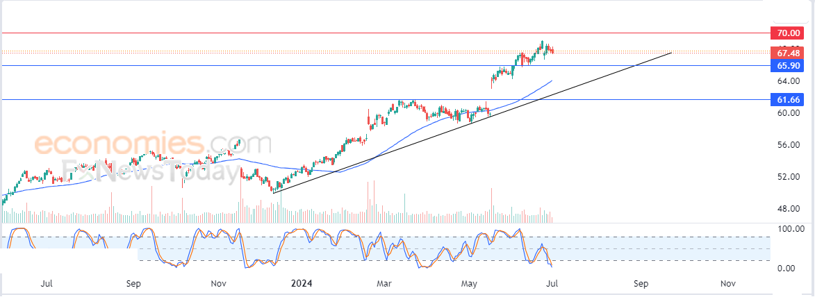 لذلك نحن نرجح عودة صعود سعر السهم خلال تداولاته القادمة، خاصة طيلة استقراره فوق مستوى 65.90$، ليستهدف أولى مستويات المقاومة عند سعر 70.00$.