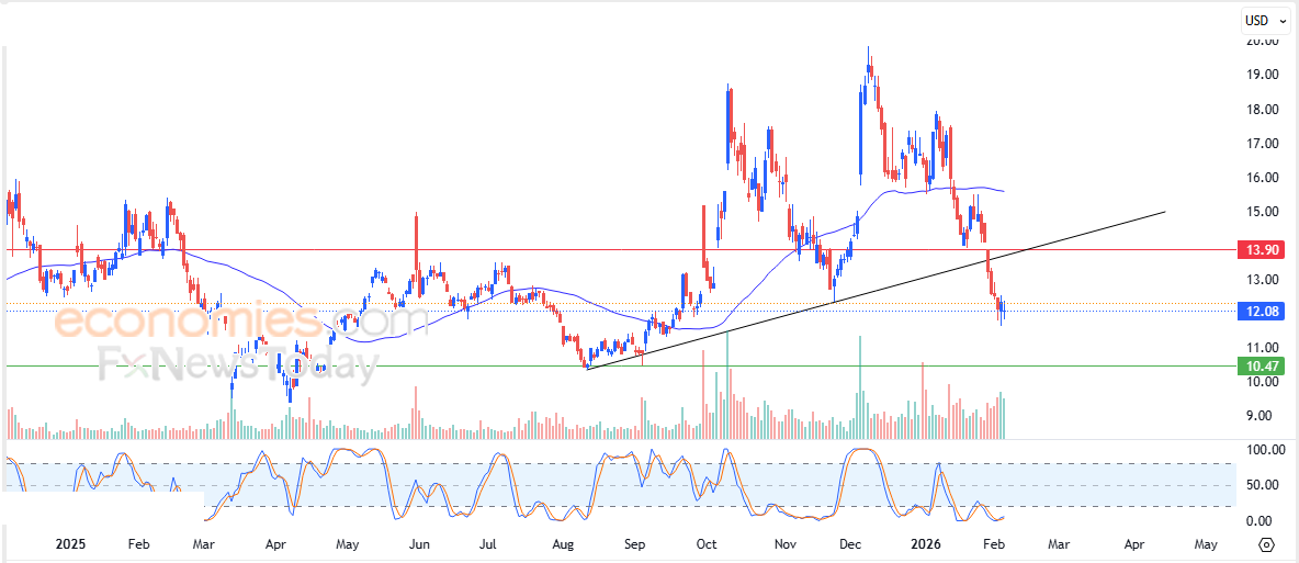لهذا فتوقعاتنا تشير إلى هبوط سعر السهم خلال تداولاته القادمة، طيلة ثبات مستوى المقاومة 13.90$، ليستهدف مستوى الدعم المحوري 10.50$.