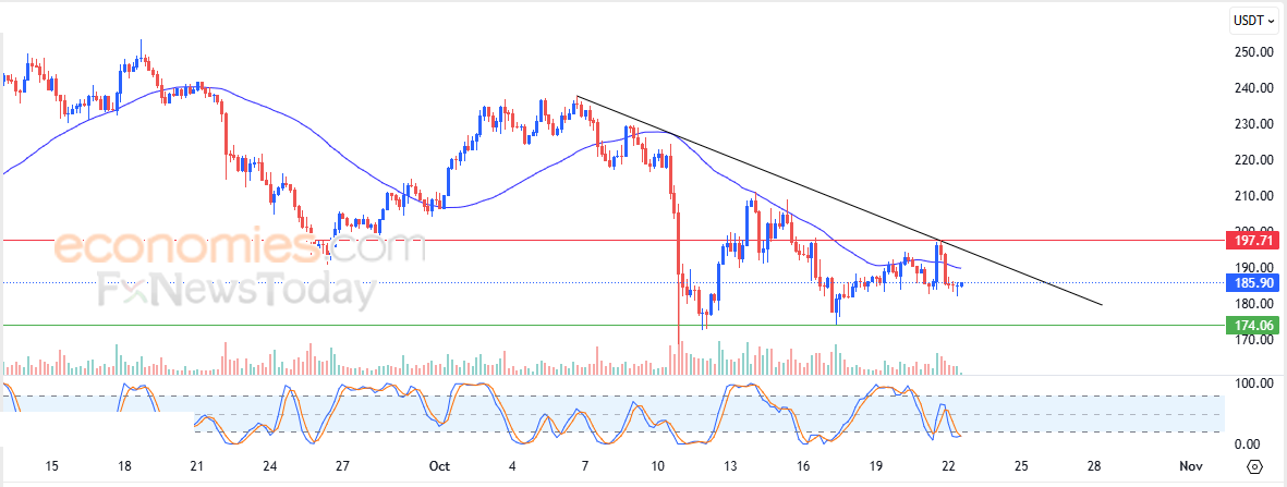 لهذا تشير توقعاتنا إلى انخفاض سعر العملة خلال تداولاته القادمة على المدى اللحظي، طيلة ثبات مستوى المقاومة 197.70$، ليستهدف مستوى الدعم المحوري 174.00$.