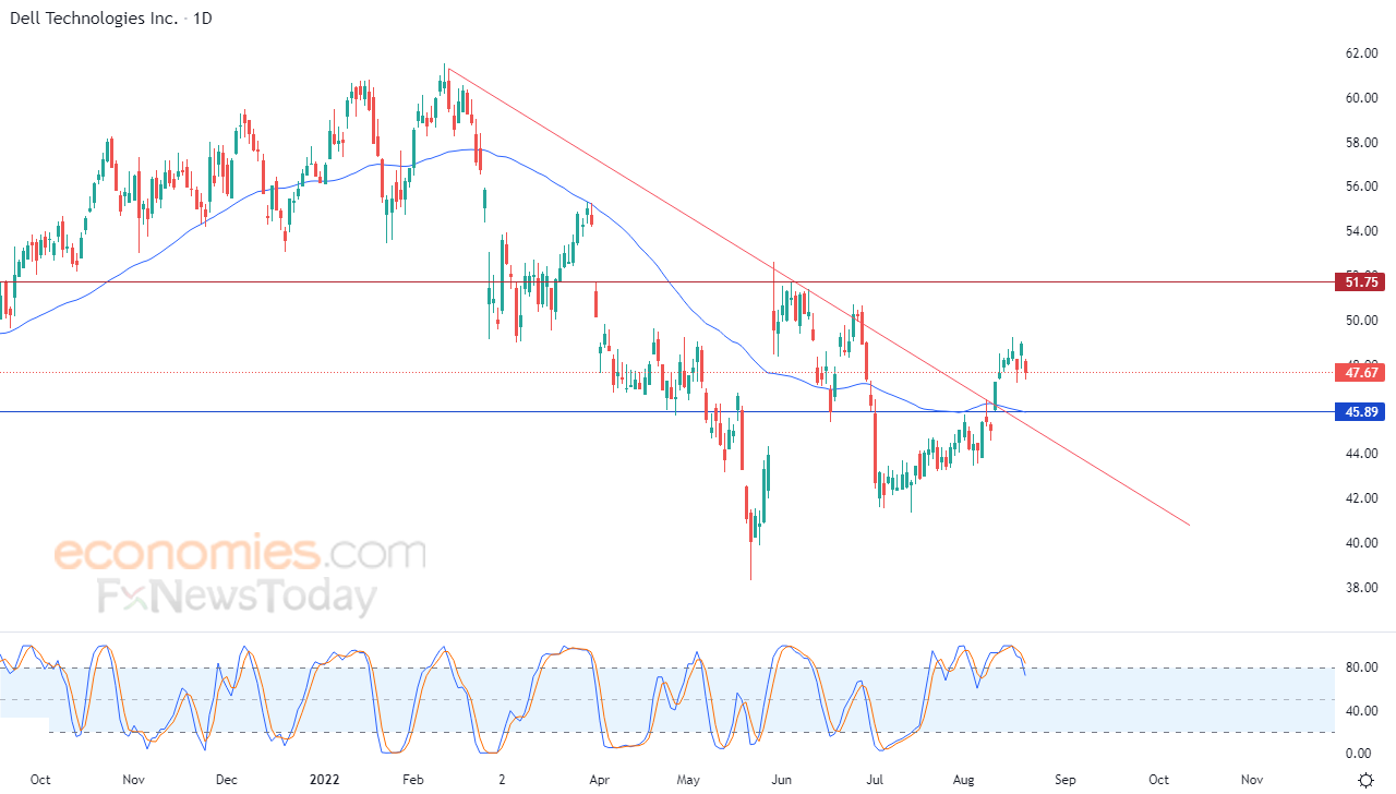 لهذا نحن نرجح عودة ارتفاع السهم خلال تداولاته القادمة، بشرط ثبات مستوى الدعم 45.90، ليستهدف أولى مستويات المقاومة عند 51.75.