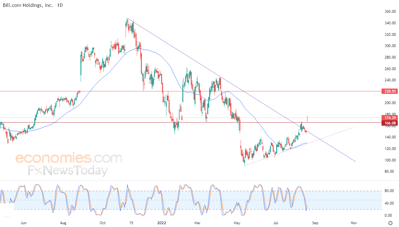 قفز سهم بيل دوت كوم BILL.COM HOLDINGS, INC (BILL) ارتفاعاً بتداولاته الأخيرة على المستويات اللحظية، بعد أن نشرت شركة البرمجيات السحابية نتائج الربع الرابع المالية التي فاقت توقعات المحللين، وأصدرت توقعات إيرادات العام بأكمله أعلى من التقديرات أيضًا، ليحقق السهم مكاسب حادة في آخر جلساته بنسبة بلغت 16.66% بما يعادل 24.89 نقطة ليستقر في نهاية التداولات على سعر 174.29 دولار، بحجم تداولات تجاوز 9.8 مليون سهم مقابل متوسط أحجام التداول لعشر جلسات سابقة والذي يتجاوز 2.8 مليون سهم.