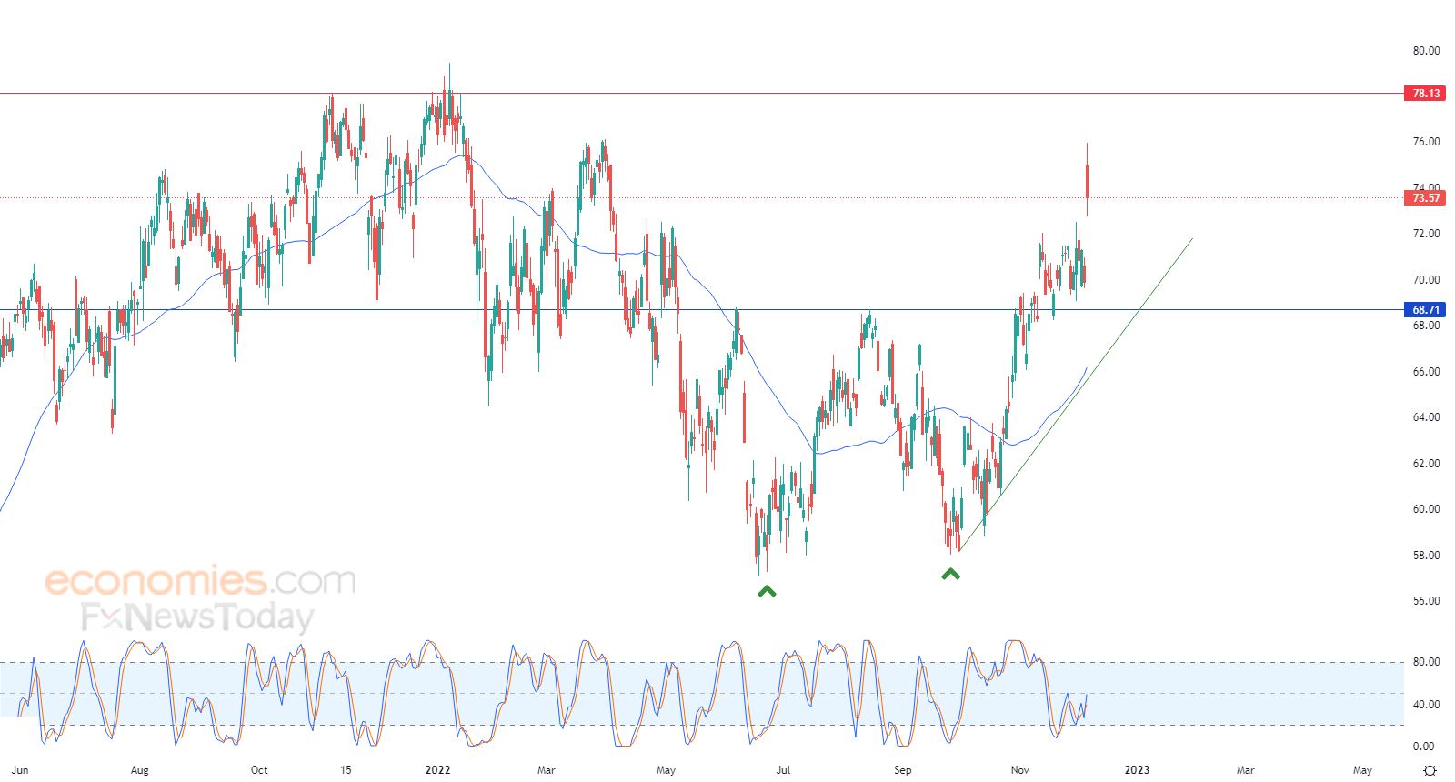 لذلك نحن نتوقع المزيد من الصعود للسهم خلال تداولاته القادمة، ليستهدف مستوى المقاومة المحوري 78.13.